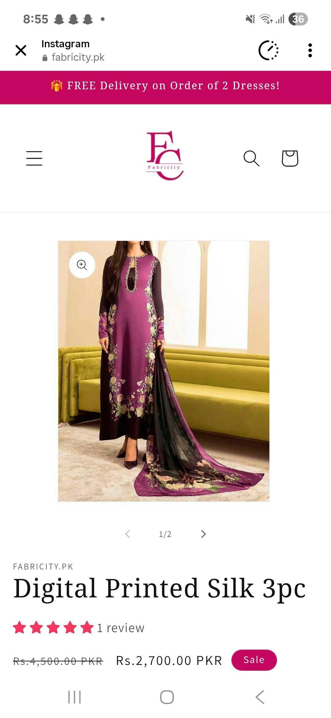 Digital Printed Silk Un-Stitched Dress Three-Piece