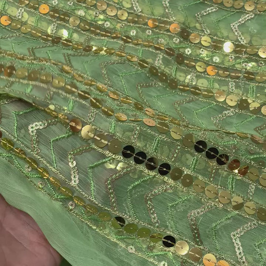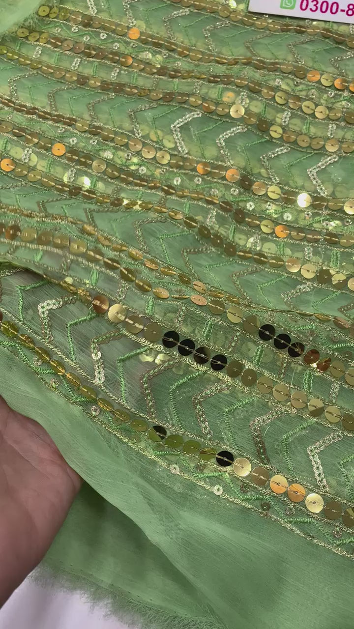 Crinkle Chiffon 4pcs Embroidered Dress with Twin Sequins