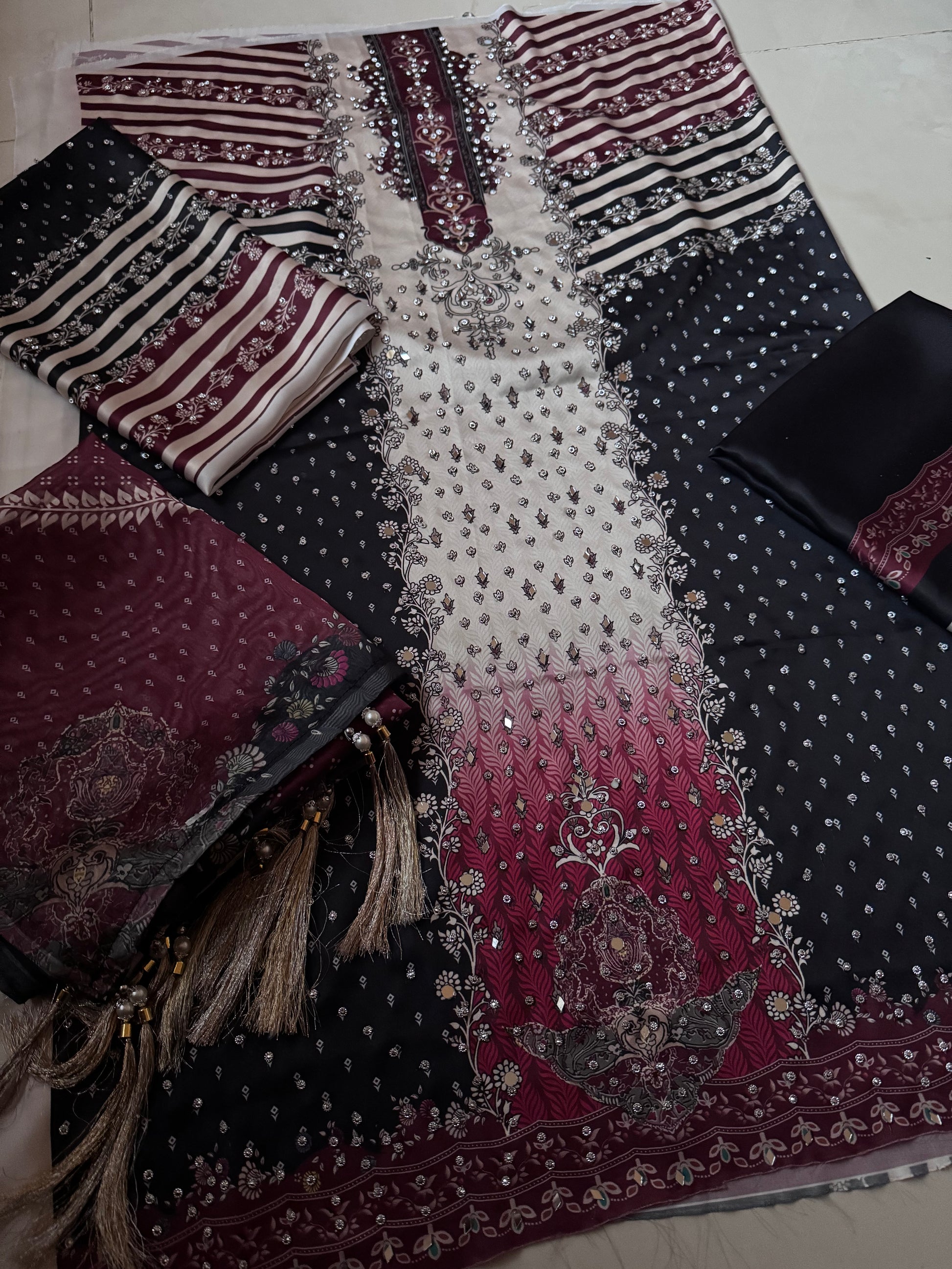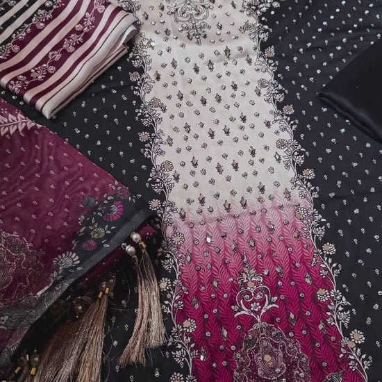 Amazing Handwork Digital Printed Silk Un-Stitched Dress Three-Piece