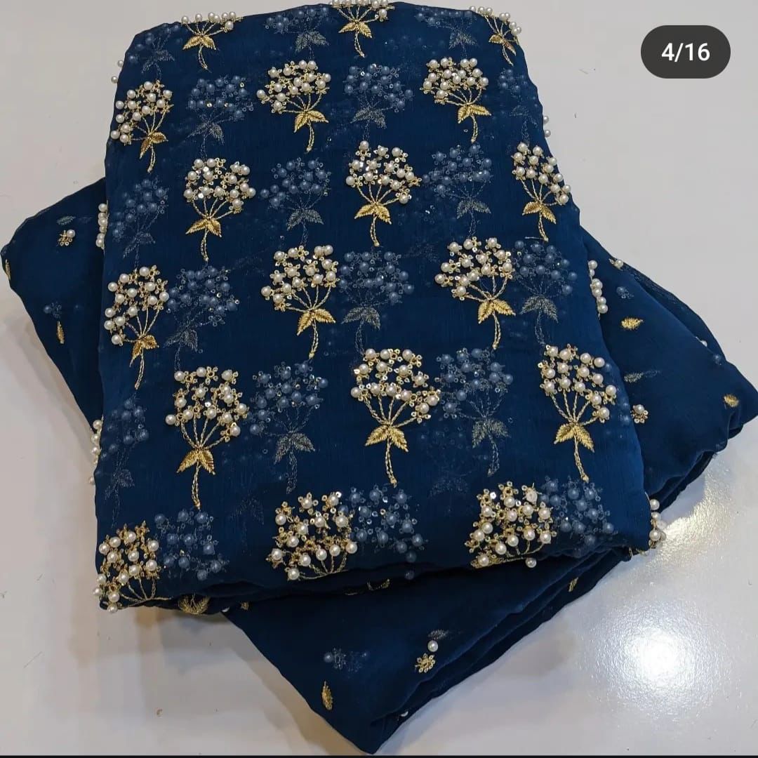 - Embroidered Chiffon Shirt with Pearls work 2.5 yards