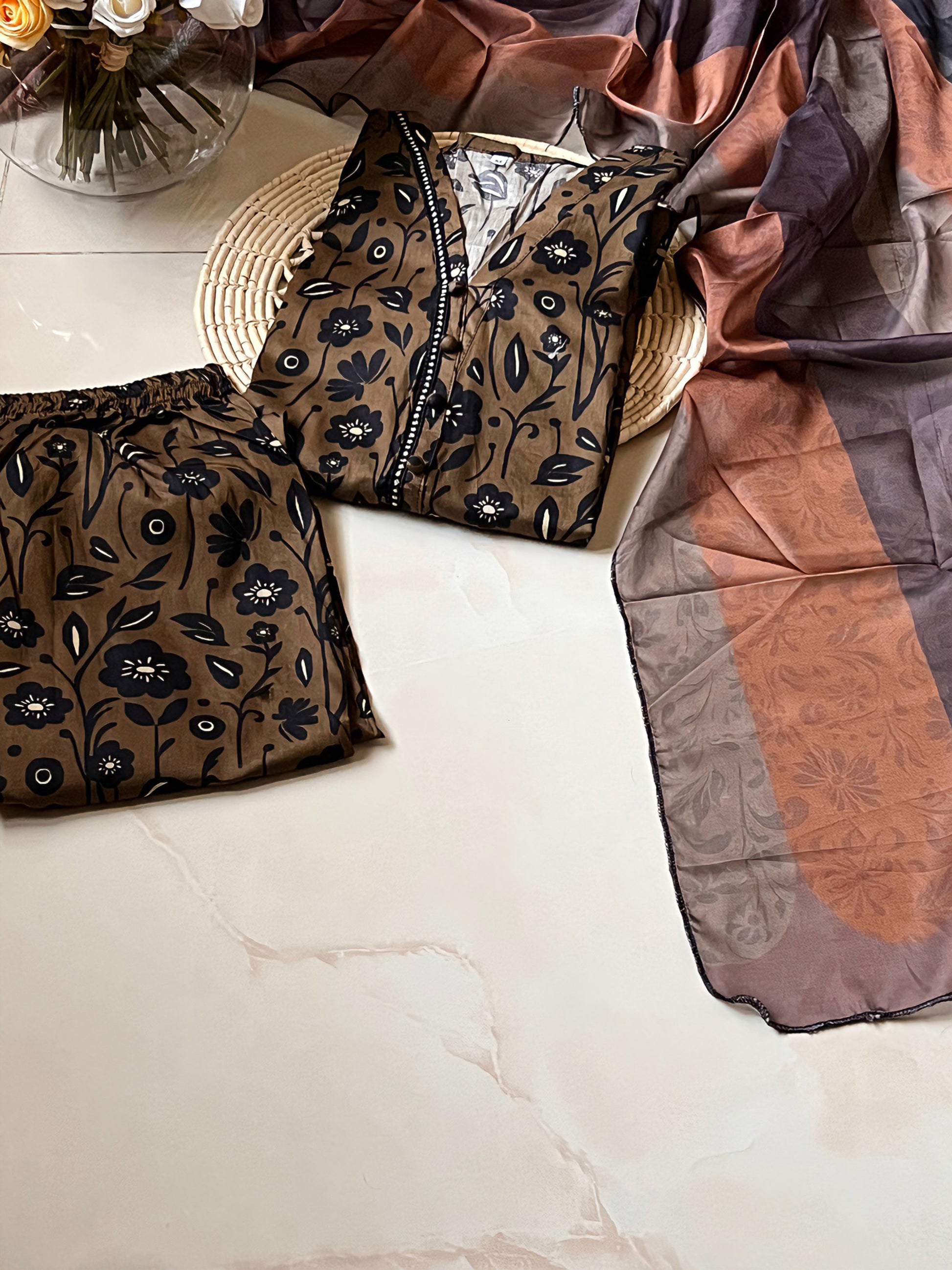 Printed Lawn with Embroidered Neck/Daman/Sleeves + Laces and Tussels