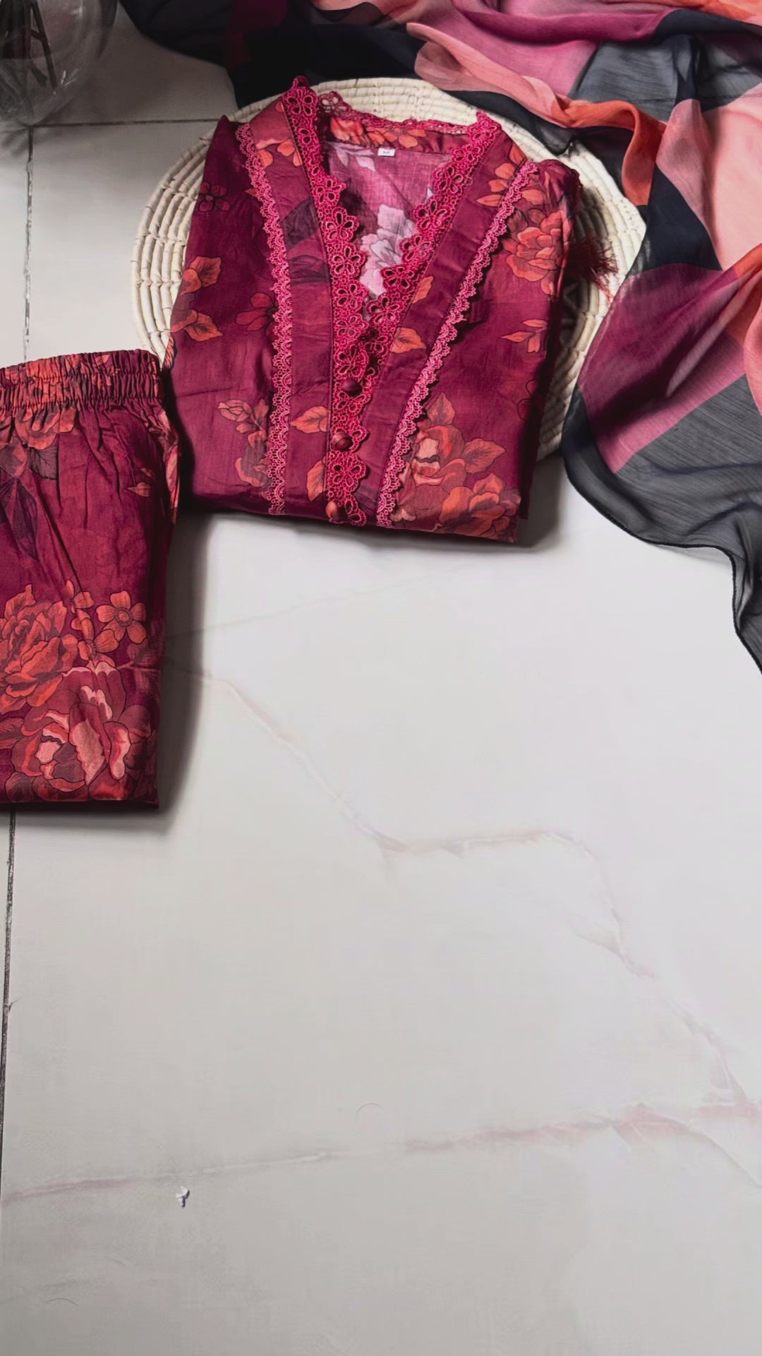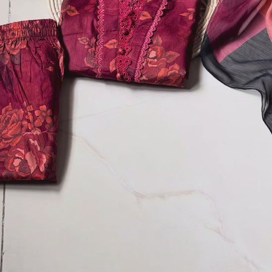Printed Lawn with Embroidered Neck/Daman/Sleeves + Laces and Tussels