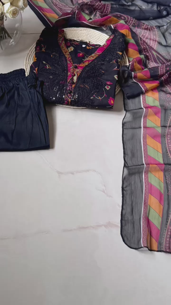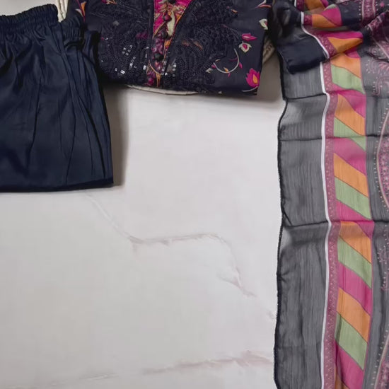 Printed Lawn with Embroidered Neck/Daman/Sleeves + Laces and Tussels