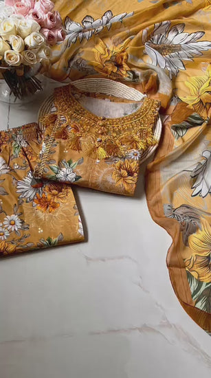 Printed Lawn with Embroidered Neck/Daman/Sleeves + Laces and Tussels