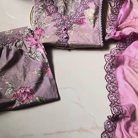 Printed Lawn with Embroidered Neck/Daman/Sleeves + Laces and Tussels