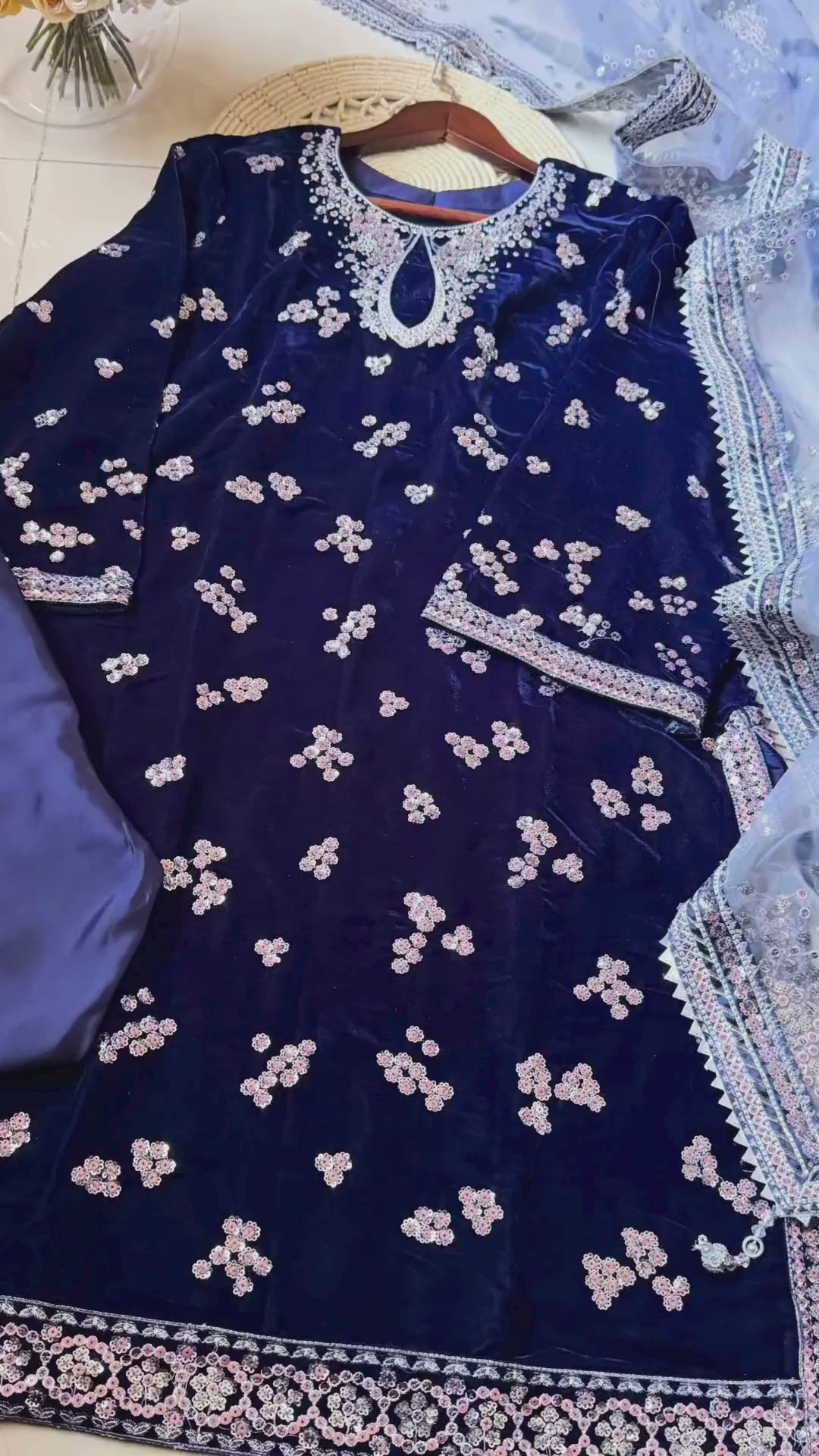 Shirt: Heavy embroidered neck, front & daman with classy handwork